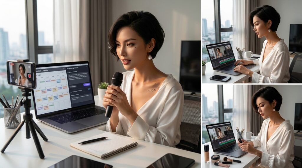 Once your visual assets are complete, batch all 10 captions in a single ChatGPT session. Write a caption prompt for each post that includes the topic, your character’s voice, and a call to action direction. After generating each caption, add one character-specific detail — a recurring phrase, a personality-consistent opinion — before saving. This personalisation step takes two to three minutes per caption and is the primary differentiator between AI-assisted content that feels authentic and content that feels generic.