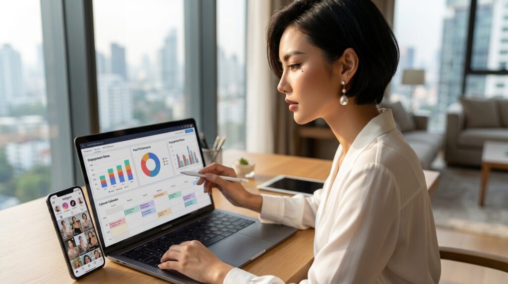 Analytics tools convert your posting activity into strategic intelligence: identifying which content formats earn the most reach, which posts drive the most saves, which posting times produce the highest early engagement, and how your account is performing relative to benchmark growth rates. The two tools below cover analytics needs from beginner to intermediate stage.